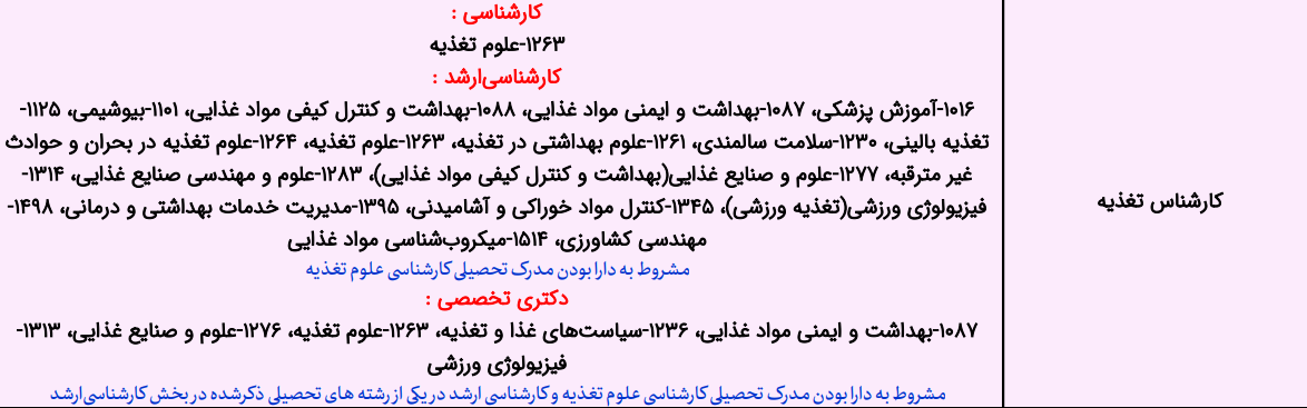 چه رشته هایی می توانند در آزمون استخدامی کارشناس تغذیه شرکت کنند؟