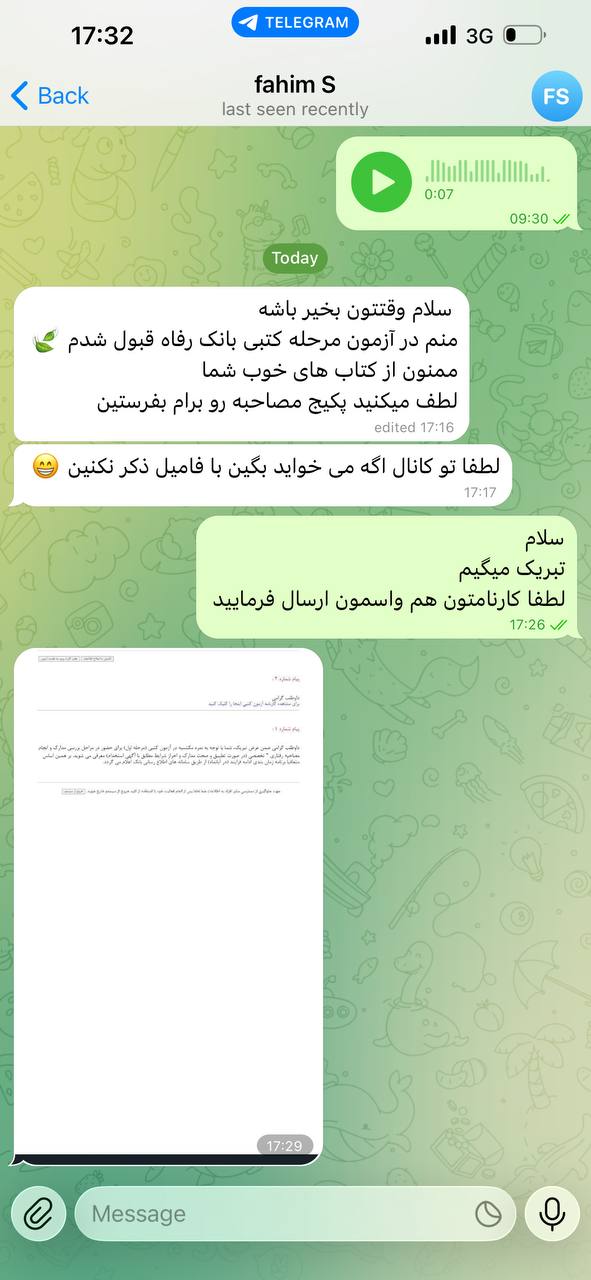 قبولی در آزمون استخدامی بانک کشاورزی با 20تدریس
