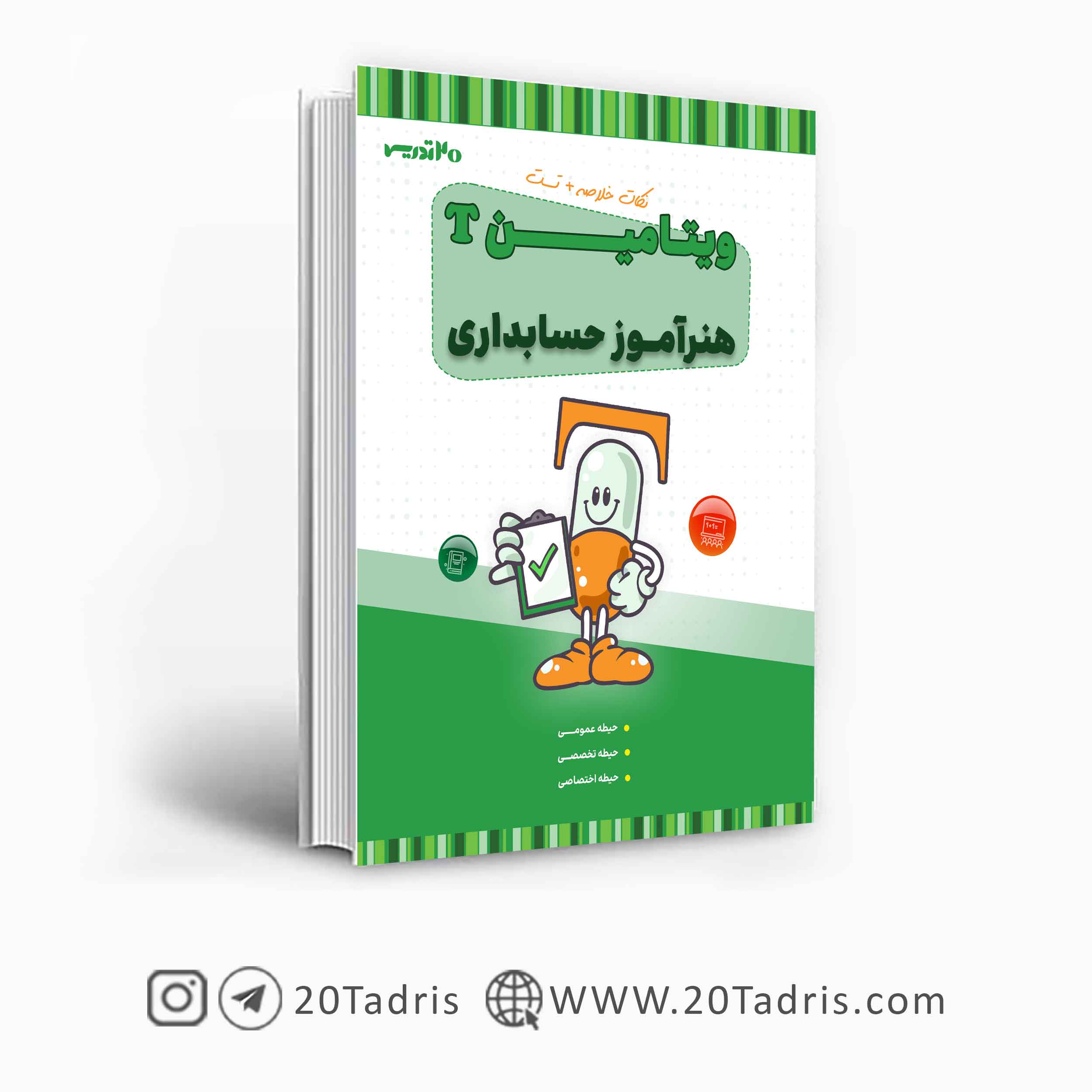 کتاب ویتامین تی هنرآموز حسابداری شامل تست های تالیفی، نکات ریز، تست های دوره های قبل و خلاصه درسنامه ها می باشد.