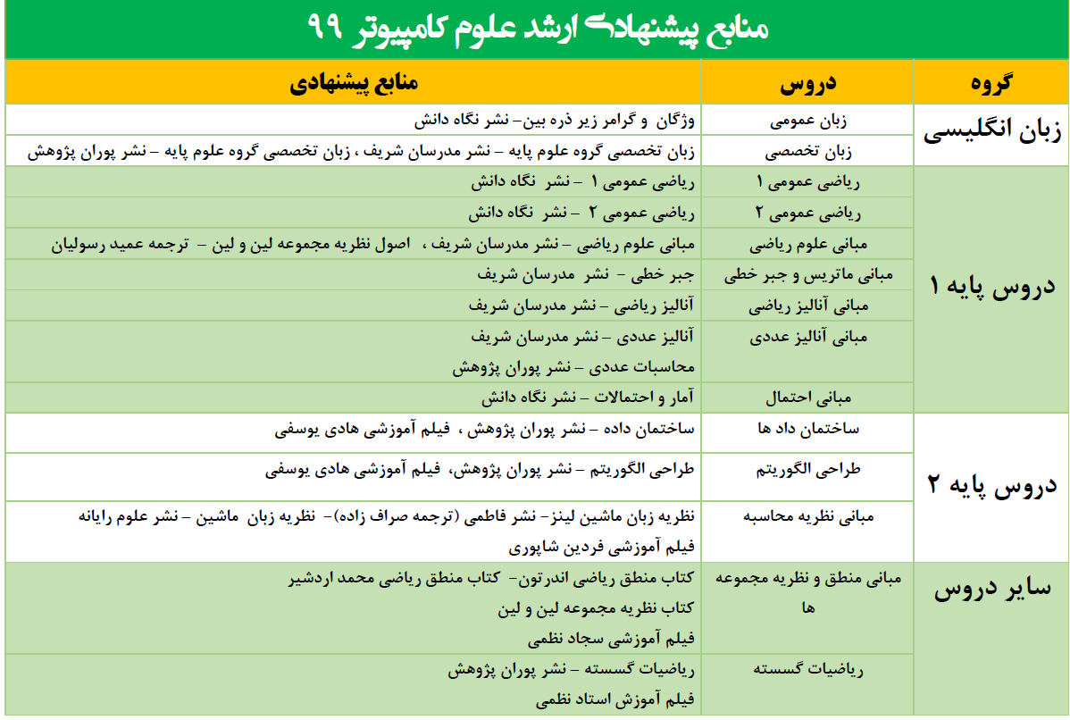 آشنايي با منابع کارشناسي ارشد علوم کامپيوتر 99